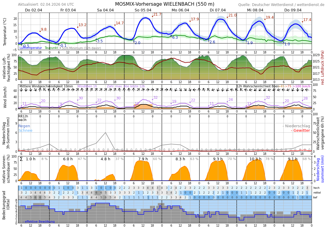 10-Tage-Vorhersage (Multi-Modell) für Bauerbach
