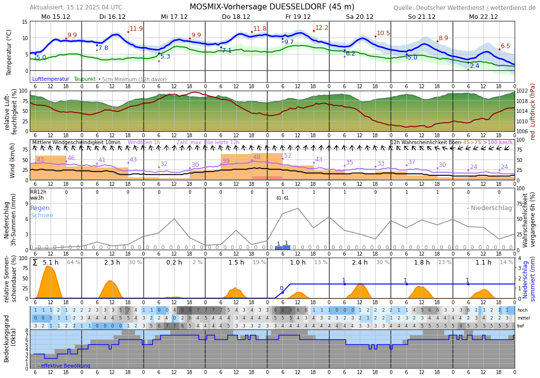 10-Tage-Vorhersage (Multi-Modell) für Erkrath