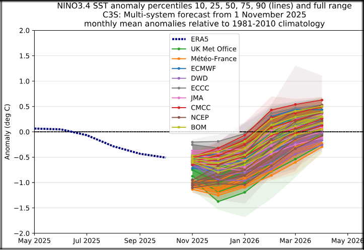 Die genannten Tendenzen fußen auf vergangene Ereignisse, auf den Istzustand und auf die jüngsten (sub)saisonalen Vorhersagen. Diese Abschätzungen sind aber unzähligen Überraschungen unterworfen, ausgelöst durch Wechselwirkungen der einzelnen Bausteine (z.B. La Nina und QBO), Überraschungen aus Richtung der Stratosphäre und einer dynamischen Troposphäre im Wechselspiel mit den warmen Meeresoberflächen. Diese Komplexität lässt einerseits nur Tendenzabschätzungen zu, zeigt aber auch, dass lineare Aussagen (schwacher SPV = eisige Kälte) ebenso kaum zielführend sind. Abgerechnet wird dann Ende Februar, wenn der meteorologische Winter 2025/26 Geschichte ist.