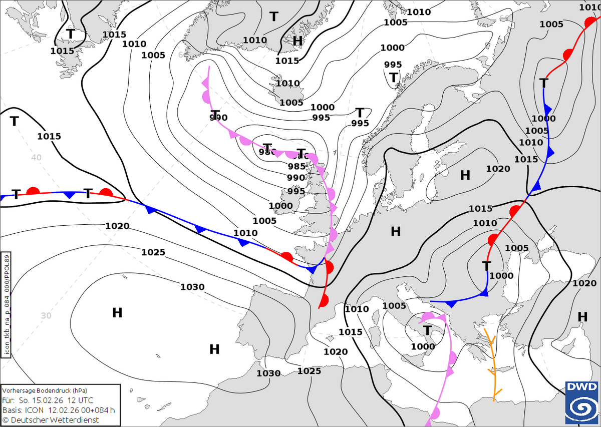 Am Rosenmontag finden dann die meisten Umzüge statt. Besonders im Blickpunkt stehen die Züge in Köln, Düsseldorf ("Helau") und Mainz ("Meenz Helau"), die zum Teil mehr als eine Millionen Besucher anlocken. Nach aktuellem Stand sieht es für die Karnevalisten allerdings nicht so gut aus. Ein Tief bei den Britischen Inseln sorgt bereits in der Nacht zum Montag von Westen für Schneefälle, sodass am Morgen gebietsweise etwas Schnee liegt. Im Westen und Südwesten geht der Schneefall dann schon in Regen über, wobei lokal Glatteis durch gefrierenden Regen nicht ganz ausgeschlossen ist. Zum Mittag hin entspannt sich die Glättelage bereits, weil es zu einer weiteren Milderung kommt. Danach gibt es aber weiterhin zeitweise Regen. In den anderen Regionen (abgesehen vom Nordosten) fällt ebenfalls etwas Regen oder Schnee, auch dort besteht dann Glättegefahr. Die Temperaturen liegen bei -2 Grad im Nordosten und bis 9 Grad am Oberrhein.