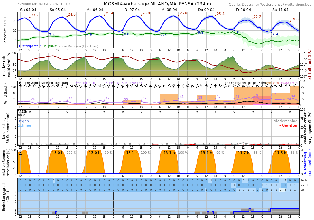 10-Tage-Vorhersage (Multi-Modell) für Lesa