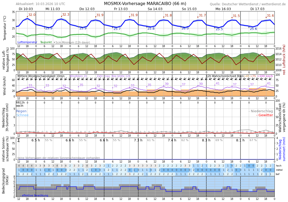 10-Tage-Vorhersage (Multi-Modell) für Maracaibo