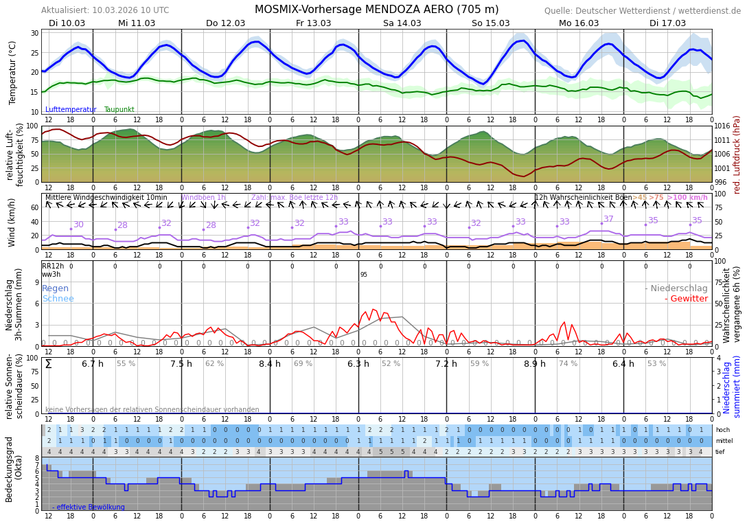 10-Tage-Vorhersage (Multi-Modell) für Mendoza